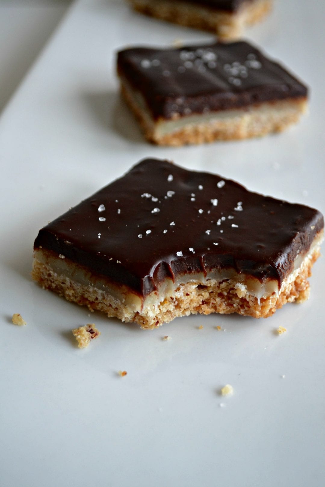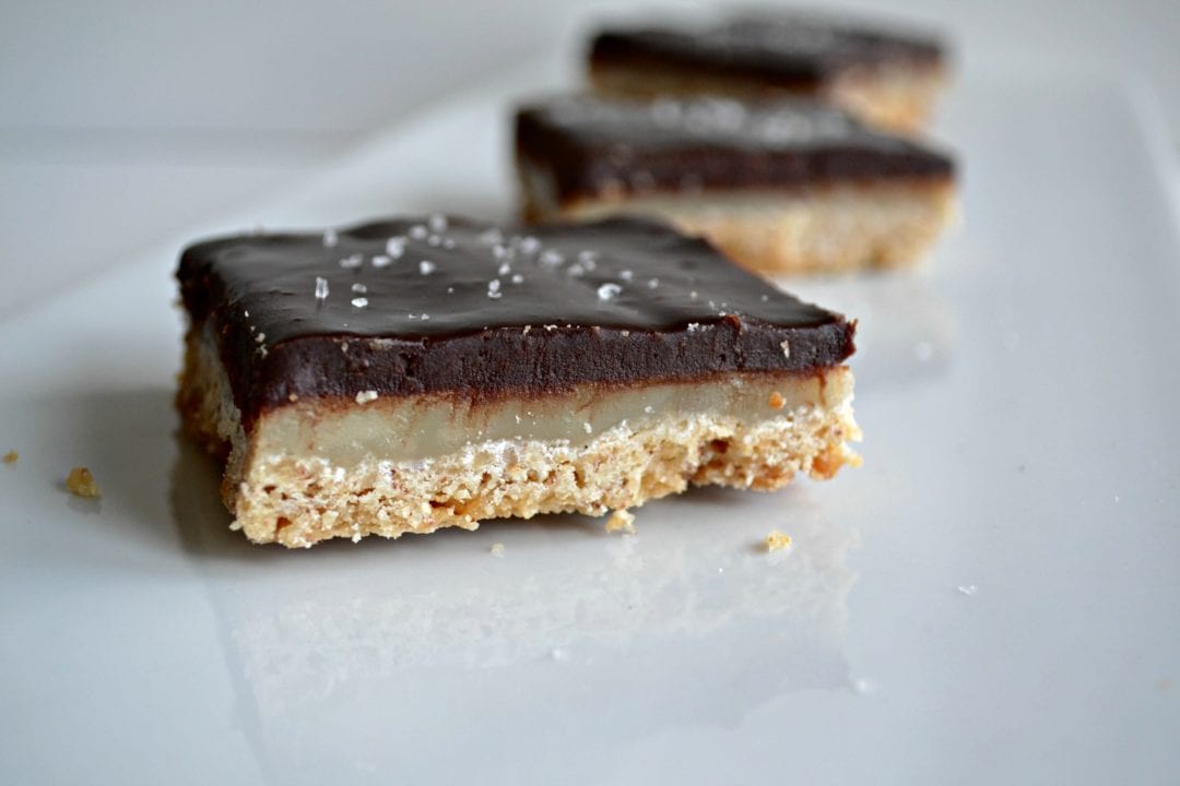That is right. Sixteen beautiful bars of chocolate ganache, caramel, and hazelnut shortbread layers calling my name every single day from the kitchen.