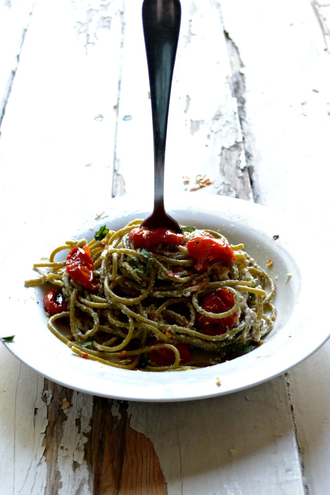 I am excited for fruit!!! I am excited for tomato season! Yessssss! To be ready for tomato season, I have an easy pasta recipe bursting with flavor. Make it tonight and pop open those windows… Well unless you are dealing with thunder storms or snow like half the country. Sorry ‘bout cha!