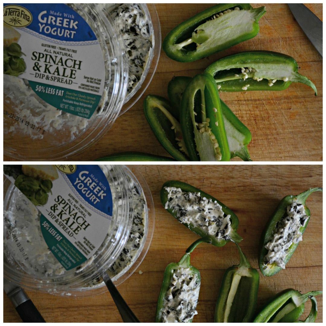 Lucky for me, one of the sponsors of The Bachelorette Party, La Terra Fina donated all these amazing dips for me and Stephie to try. (Psst they are also going to be giving some away in our huge giveaway in a few weeks!) I used the Greek yogurt based dip to keep this skinny. Each popper is under 100 calories!