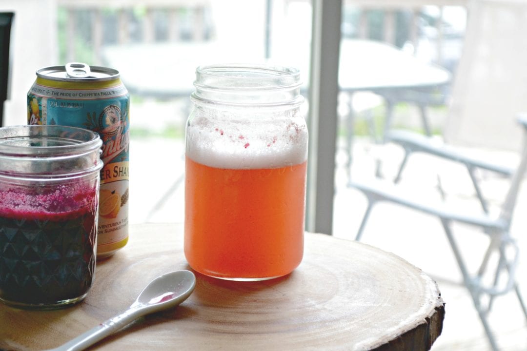 - Add it to your favorite light fruity beer. I used Leinekugel Summer Shandy. I think a nice Blue Moon would be good with this syrup too.