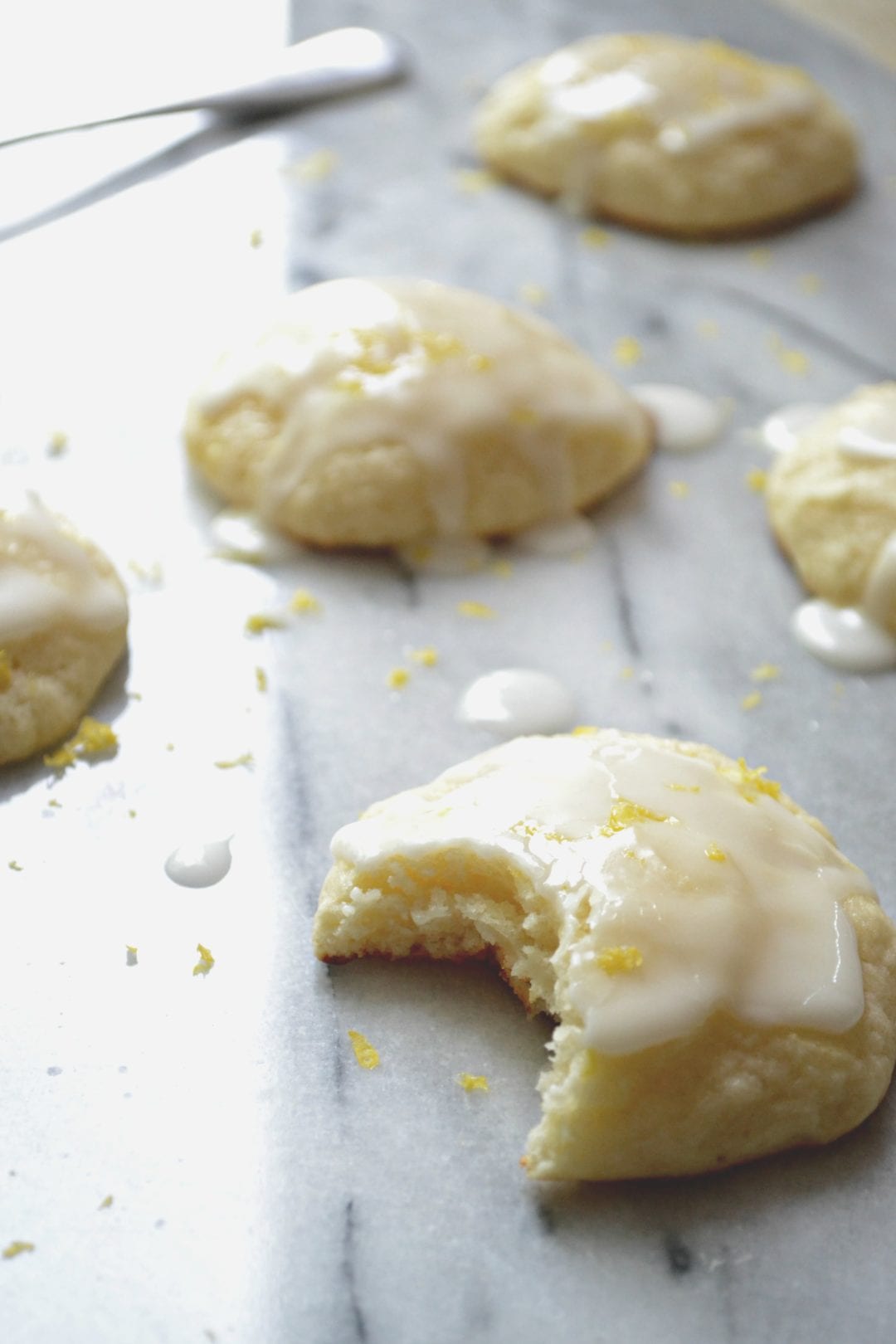 These cookies are soft like a muffin top (which I am trying to get rid of hahah) and covered in a lemony glaze.