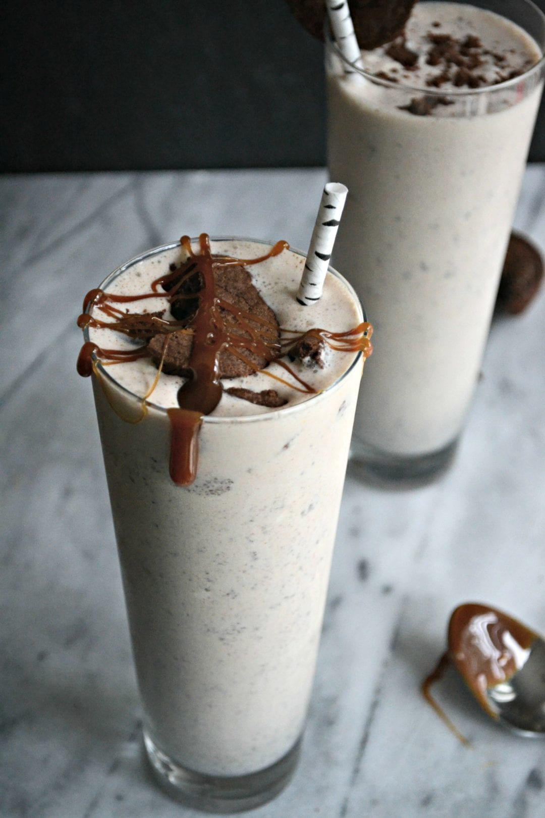 That caramel drizzled on these milkshakes totally puts them over THE TOP!
