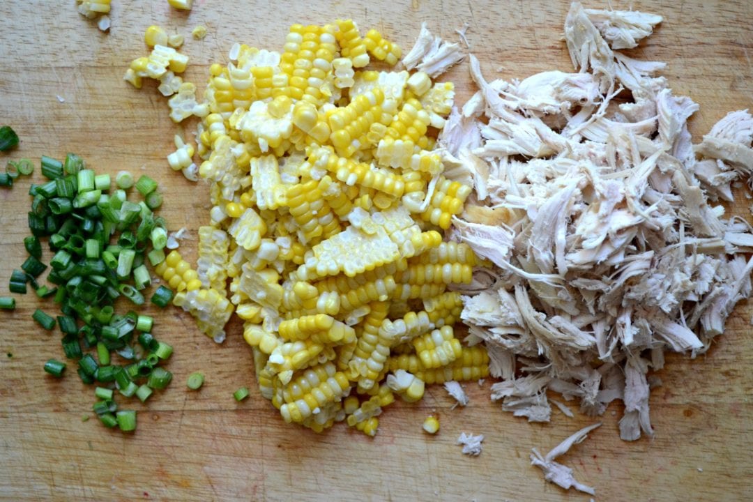 Add the chicken, corn, and green onions to the bowl. Mix until evenly coated.