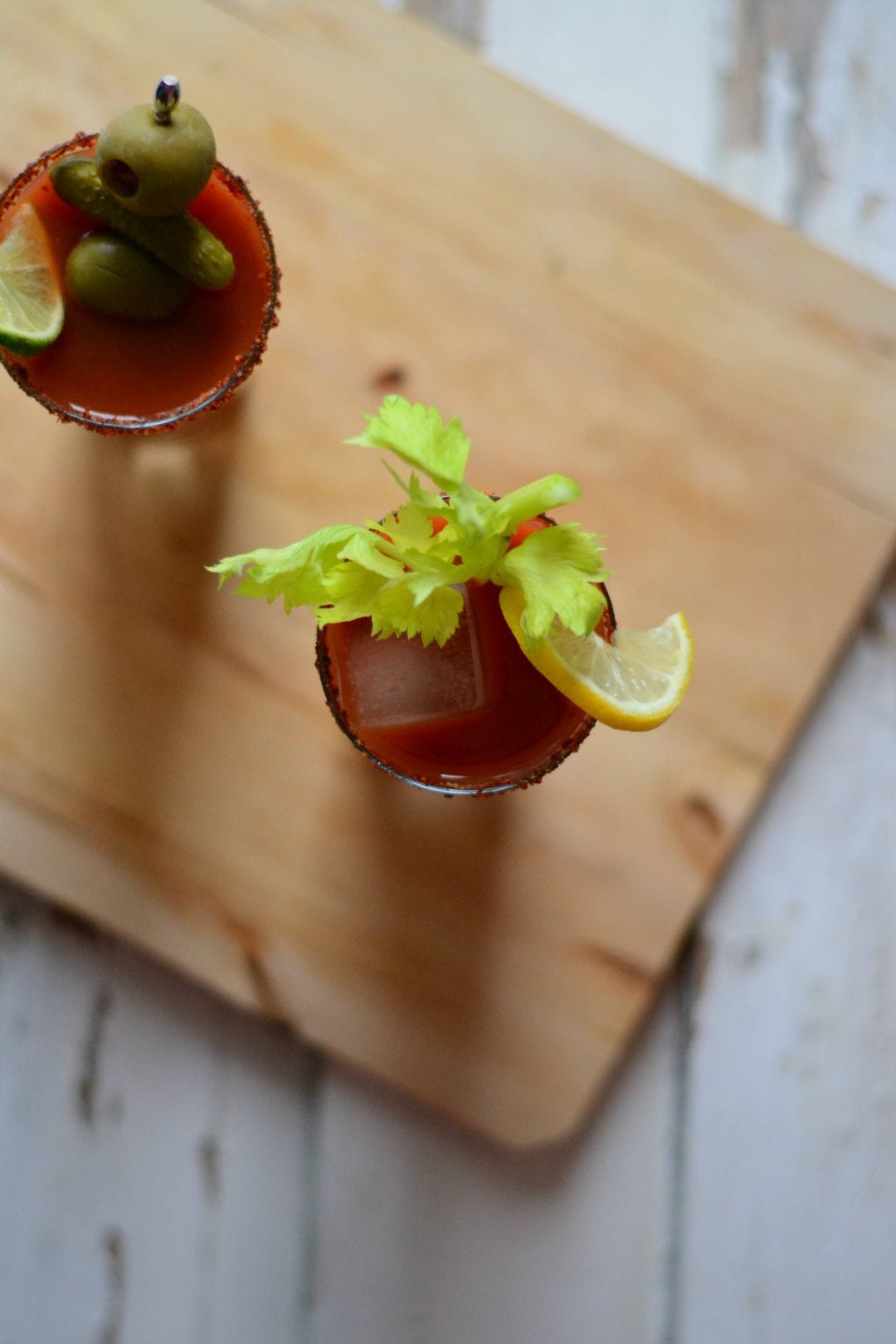 - Serve with celery stalks lemon slices, lime slices, olives, and pickles.