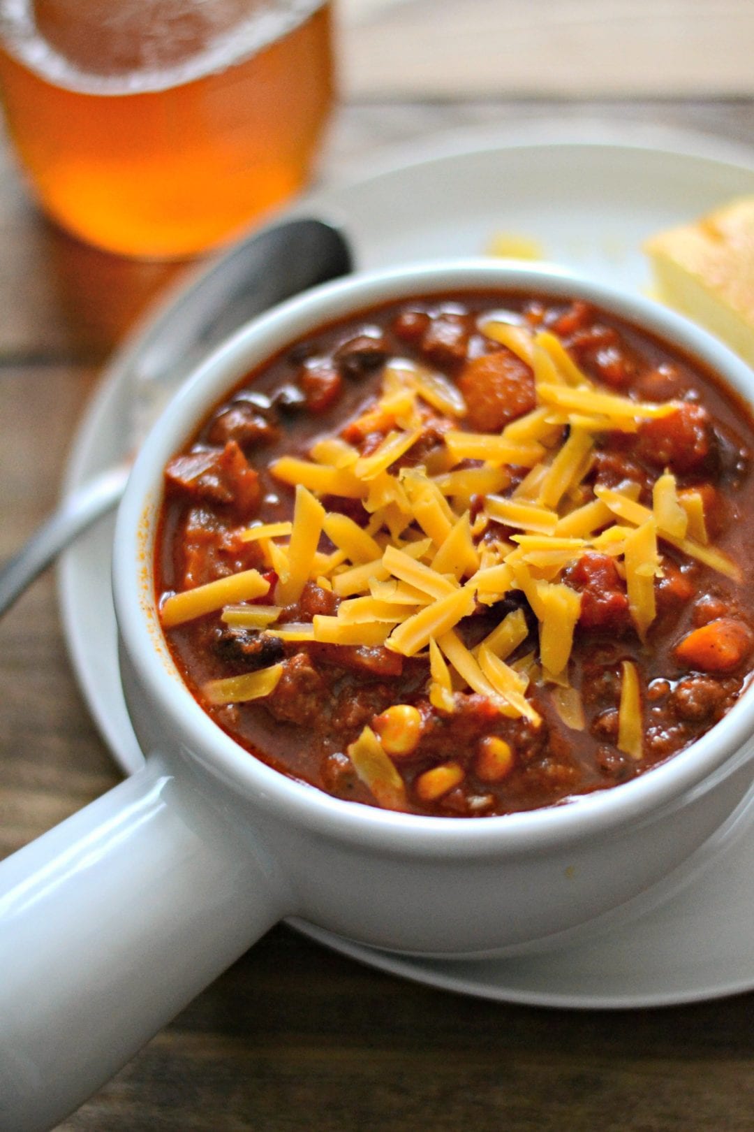 This is the chili recipe I make on the reg. I honestly feel weird putting measurements on the spices because I literally change them up every time I make this. I add more spice when it is just me and Mike or less if Andy gets to have some of the veggies. Also feel free to swap out beef for chicken or turkey. This recipe is very versatile and can help you through all the fun that is involved in living a budgeted, adultified life!