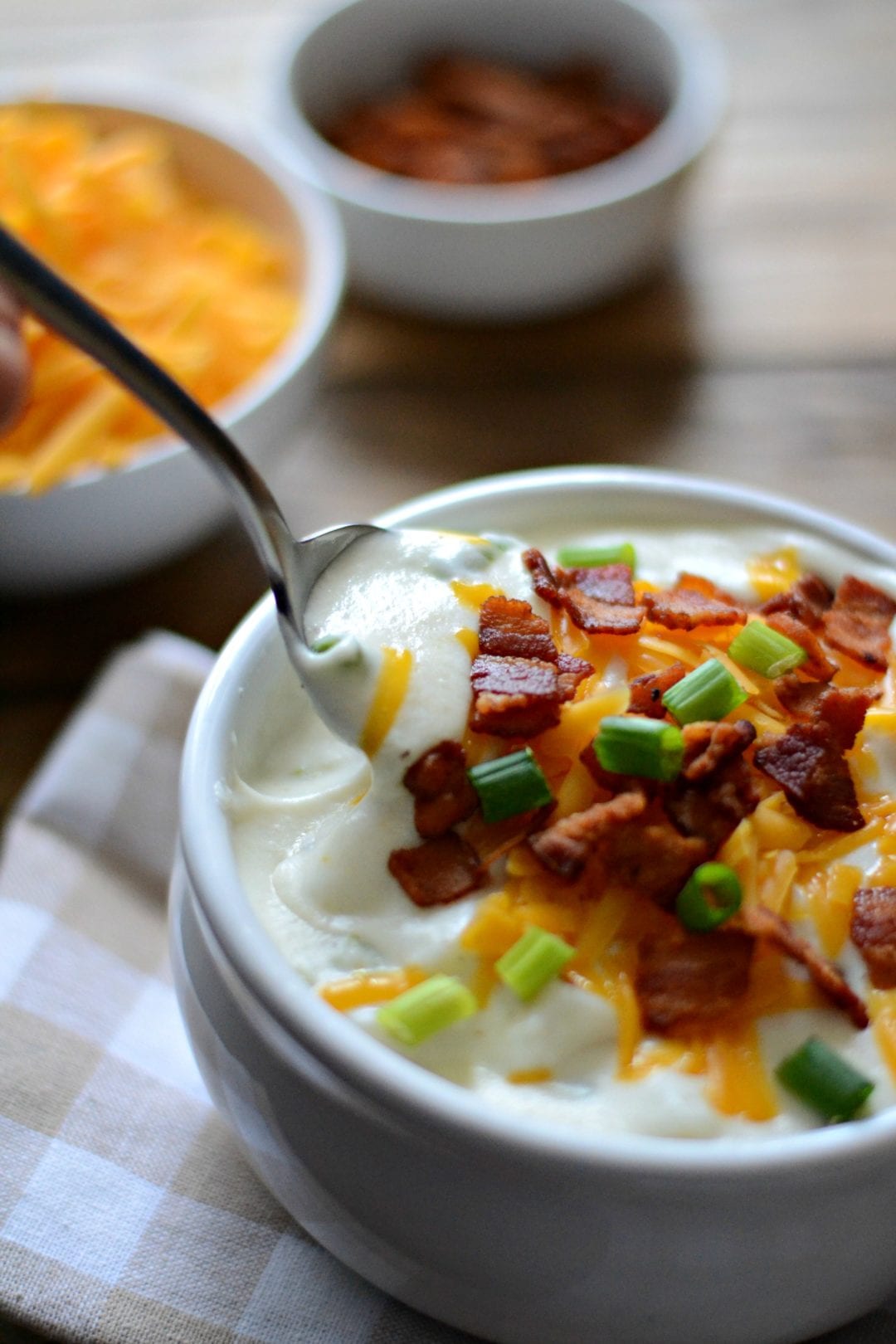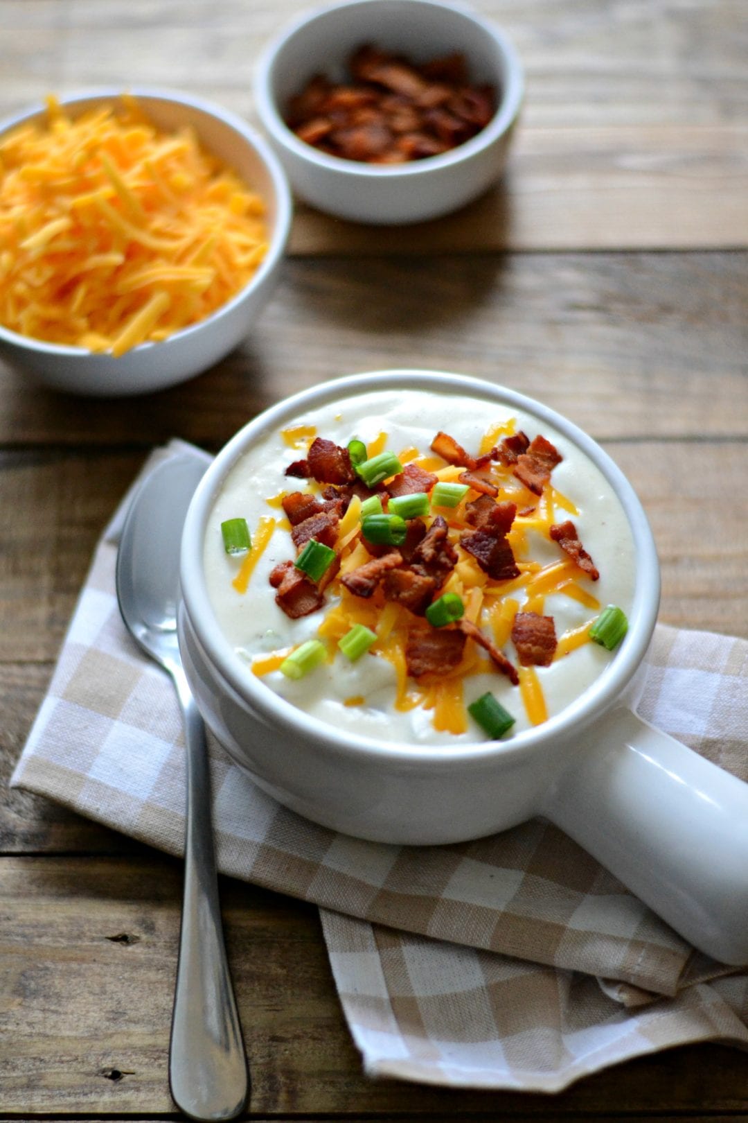 PS My favorite way to eat this soup is to keep all the cheese, bacon, and green onions out of the soup and use them as a topping put on right before you eat. That way the star of the show, the bacon, stays crispy.
