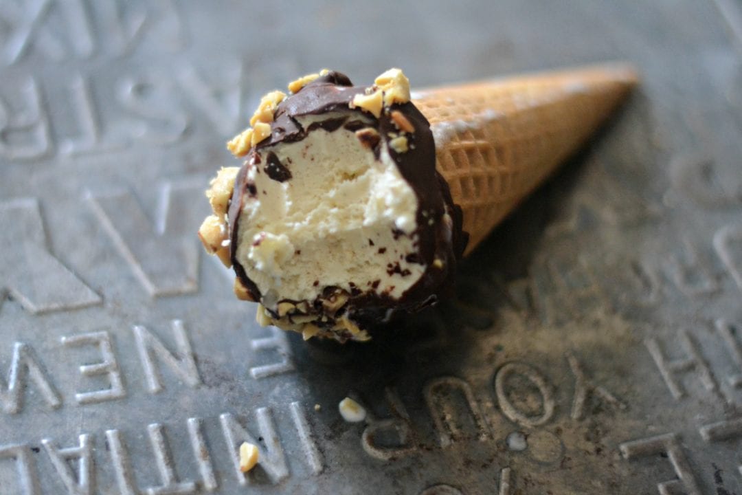 Eating ice cream outdoors in the heat is not a classy look. That is why it is better left to kids with dirty, scraped knees and sticky hands. These days the ice cream truck is a long gone past time. I think in the whole time we have lived here, I have only heard the creepy song once but I have never seen it with my own eyes.