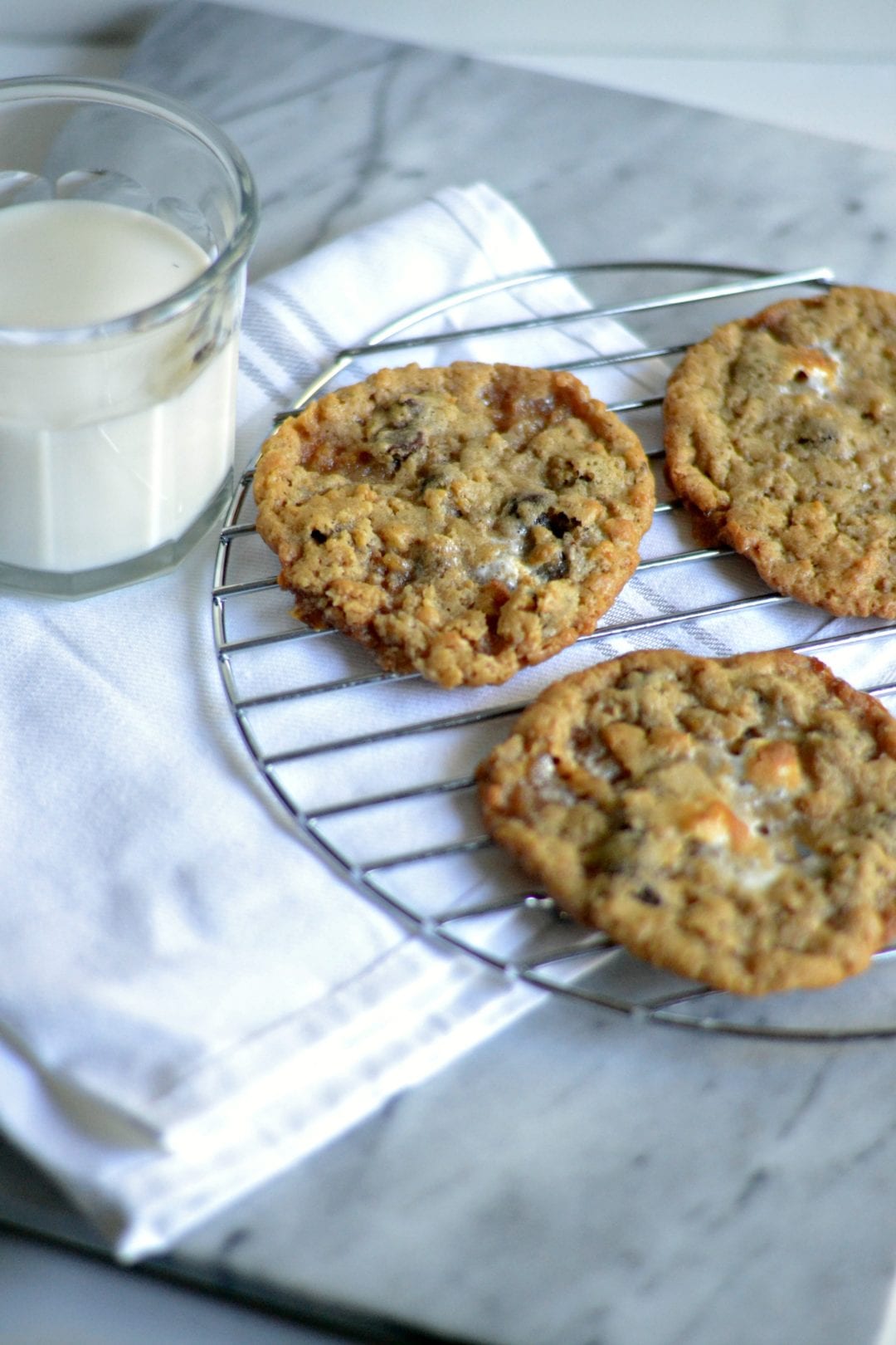 Let the cookies cool on the baking sheet for three minutes before removing and transferring to a wire rack to completely cool. Cookies will continue to harden as they cool.