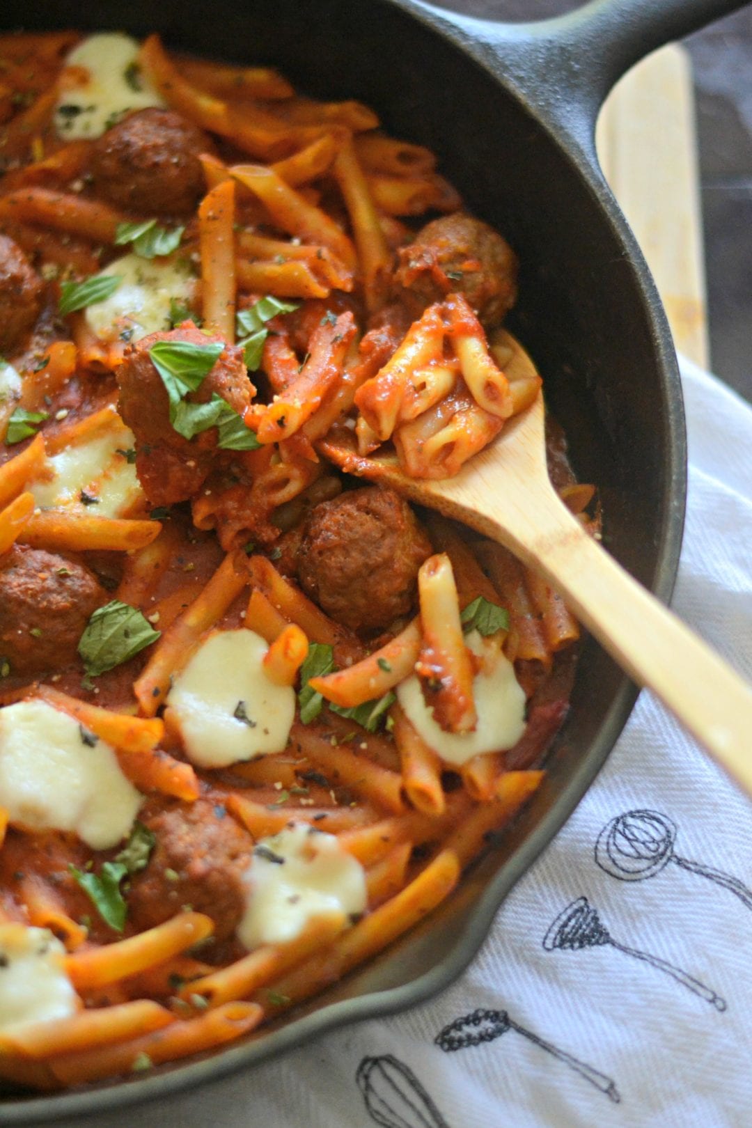Cover pan with lid and bring to a simmer over low heat. Simmer covered for 35-40 minutes. Stir occasionally to make sure no pasta sticks to the pan and to flip the meatballs at least once.