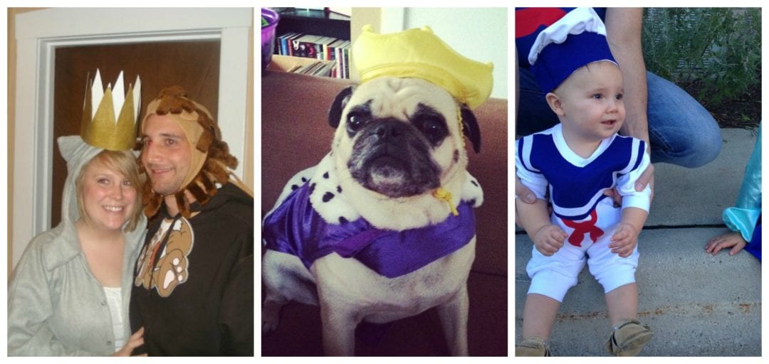 So, I dug up a picture of me as Max from Where the Wild Things Are, aka a wolf when I wasn’t wearing my paper crown. Mike was supposed to be a wild thing…. As you can see he went and bought a baby lion costume and jammed it on his pea head. Would you believe his costume was the hit of the party? How? How do I strike out every year?
