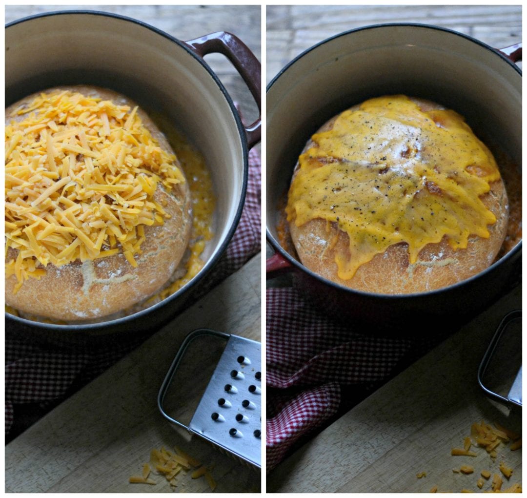 Remove from the oven. If adding the cheese crust, add the grated cheese to the top of the bread loaf. While the bread cools, the cheese will melt. Let the bread cool for an hour before slicing.