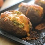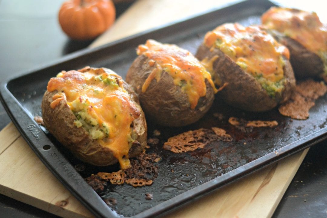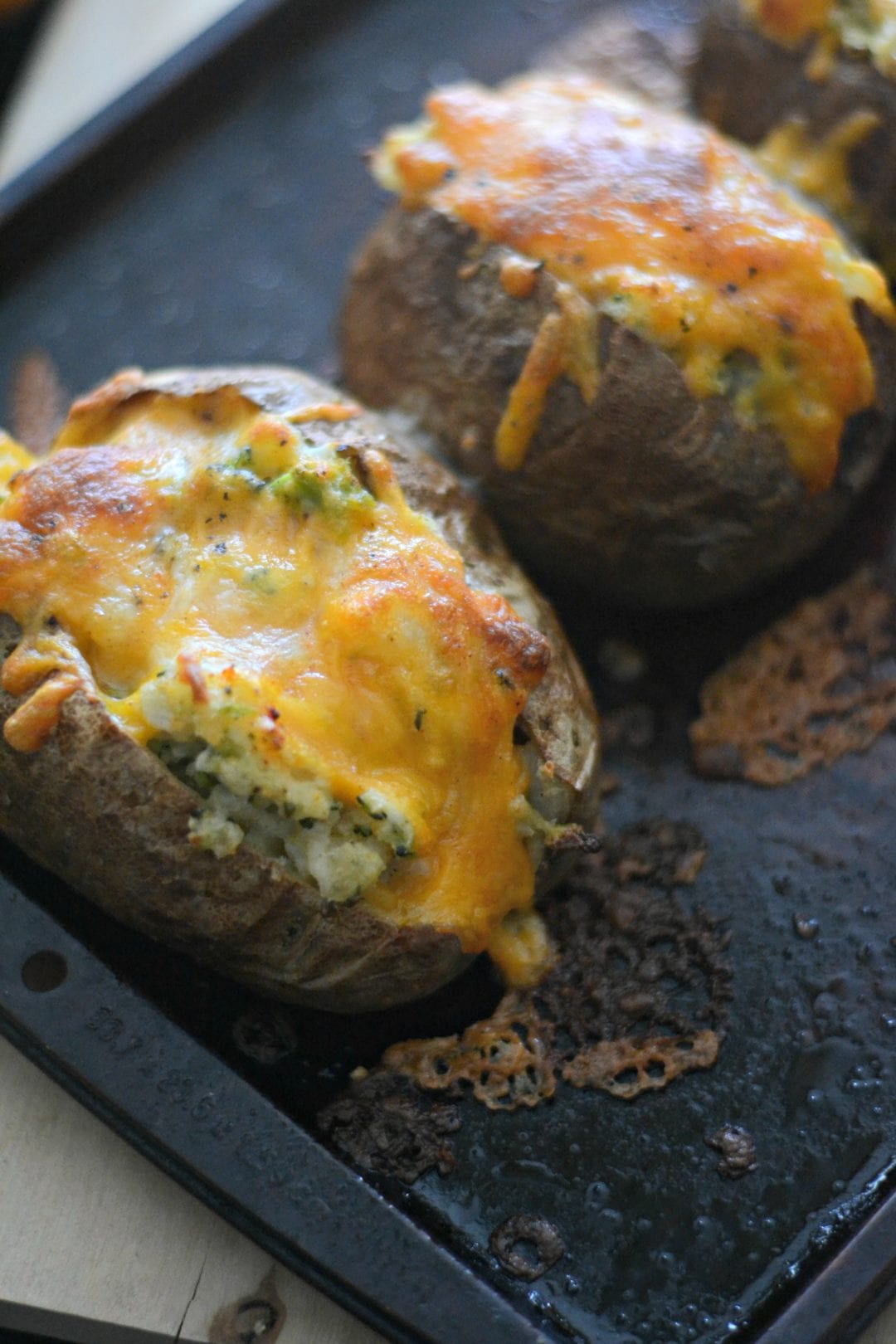 In the meantime, I will spare you my charm and get right to these beauties. I like to think the broccoli balances out the three cheeses stuffed inside the potatoes. Mike and I ate these for lunch one day and then with soup for dinner the next day. I would even dare to say that for those of you looking to get away from traditional mashed potatoes at Thanksgiving dinner, these might be the way to go!