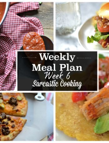 This is the first installment of weekly meal plans on Sarcastic Cooking. I am taking what me and my family cook Monday through Friday and sharing it directly with you here. On Sunday (or sometimes Friday if I feel ambitious) I write down dinner ideas for the upcoming week in a little $3.00 notebook from Target I keep on my kitchen island. I try to stick with a pasta night, soup & sandwich night, Mexican night, leftover night, pizza night, and the all too popular stare into my fridge until a lightbulb goes on in my head night.