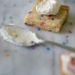 Spoon dollops of frosting on top of each blondie and then top with more sprinkles.