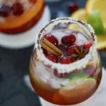 Garnish with limes, orange slices, orange zest, cinnamon sticks, star anise, and fresh cranberries.