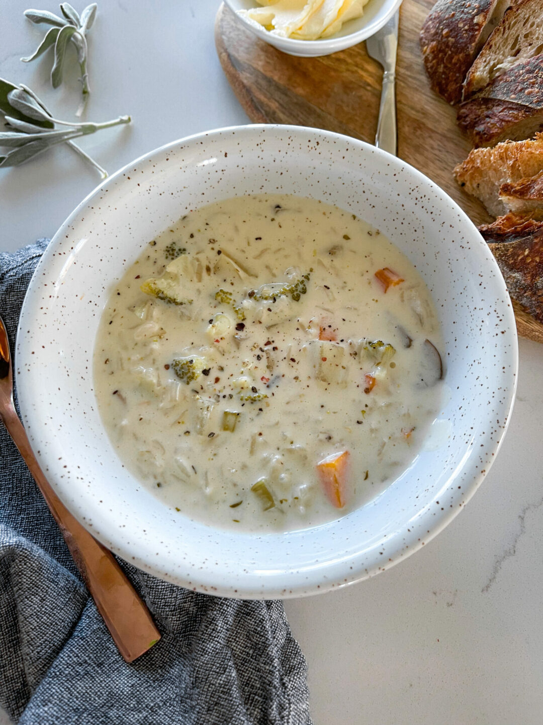 - First off, if you like my mother, do not like a creamy soup, you can skip the milk and double up the veggie stock. Add the rice and the stock and water and cook until the rice is tender. Voila, you have a brothy, hearty vegetable soup.