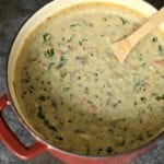 A creamy and hearty soup filled with a ton of asparagus, mushrooms, spinach, carrots, celery, onion…. OH! and potatoes. I think I got them all! This soup is made to make you not feel so bad about indulging in all the creamy calories.