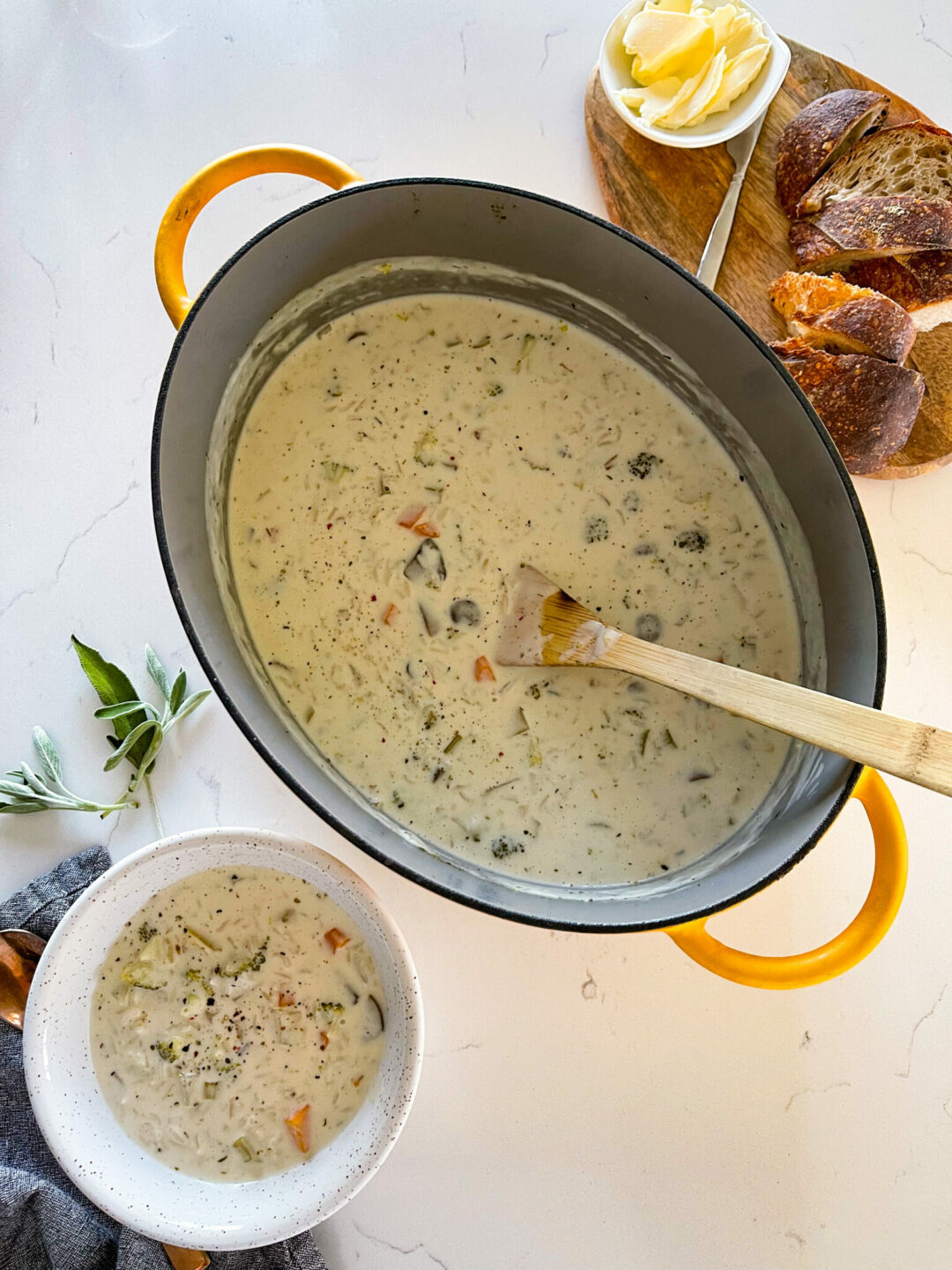 I am sure at some point I will get this brain space back. I can refill it with new recipes and new super awesome theme songs through the years. In the meantime, soup. This soup recipe right here, creamy vegetable and wild rice soup.