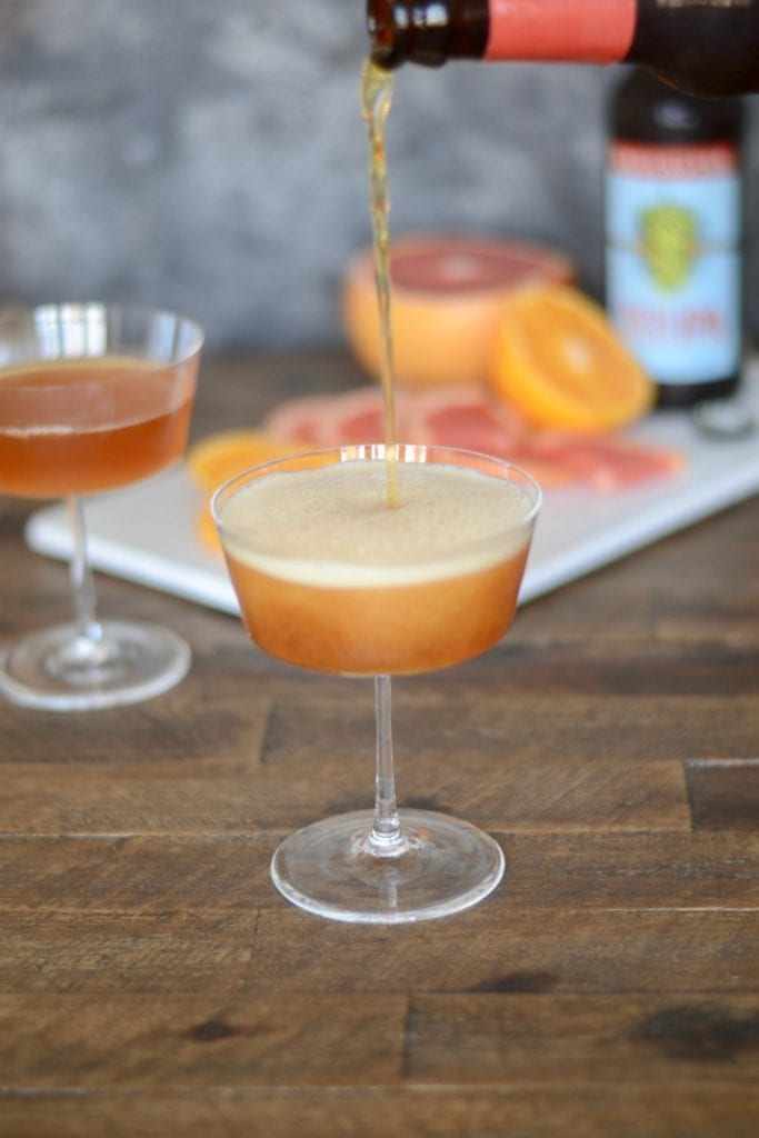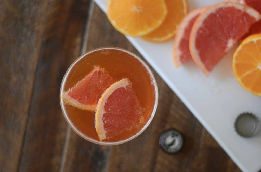 A few notes on the recipe: Don’t skip the grapefruit. It will sweeten and enhance the hoppy flavor of the IPA. You can use whatever orange you have on hand; navel, Cara Cara, Mandarin, or even a blood orange would be fantastic. If you cannot find Deschutes Fresh Squeezed IPA, try Ballast Point Sculpin IPA, Lagunitas IPA, or Stone IPA.