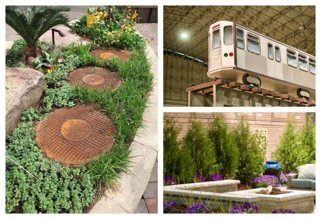 The next thing that caught my eye was a giant subway car on an elevated track. Yes, a model ‘L’ train right in the venue. Being the mom of two train obsessed boys, I had to get some pictures of this area. It was called “Below the 811 Bungalow Garden.” They had planters made of repurposed PVC, drain covers as garden centerpieces, water features, and even a construction vehicle (an excavator to be exact). All you boy moms know what I am talking about.