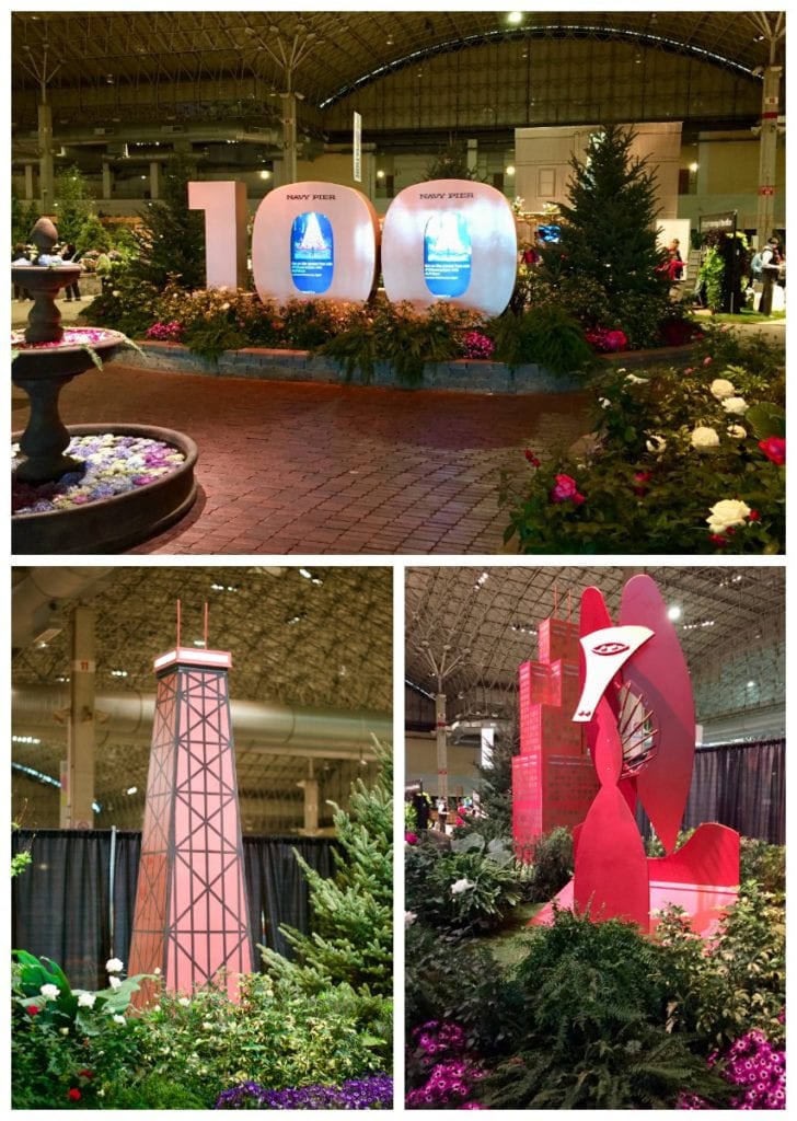The entryway is beautiful. A big silver 100 with two screens in the middle of the 0’s displays all the social media pictures from the event. There were three huge replicas of the Picasso statue, Sears (Willis) Tower, and the Chicago Water Tower. Very cool. The lighting in the front changed and, as it changed, it highlighted different vibrancies of the plants on display. You are hooked!