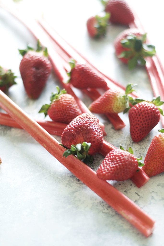 - 5 Stalks of Rhubarb greens removed and cut into 1 inch pieces