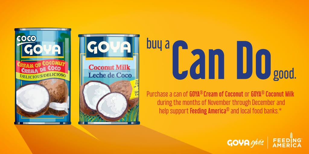 For every can of Goya Coconut Milk purchased in November and December, Goya will donate products to Feeding America. The food will then be distributed to families in need at local food banks across the country. The ‘Can Do’ campaign is part of Goya Gives, a national initiative committed to supporting local communities through social and environmental causes.