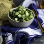 This isn’t a classic guacamole recipe. This is a cool and crunchy appetizer that can be thrown together in a pinch. Crisp cucumbers, smashed avocado, lime juice, and spicy zhoug sauce. It goes well with tortilla chips or pita bread.