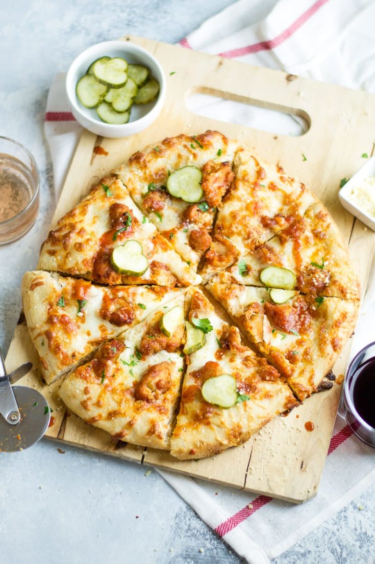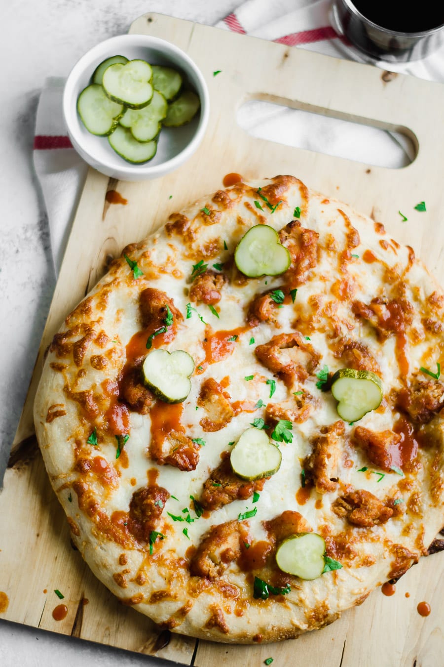 Nashville hot chicken pizza combines glorious spicy fried chicken with the calming effect of cheese and pickles. Trust me it works! Use leftover chicken tenders for the topping; just toss with sauce and make hot chicken pizza this weekend!