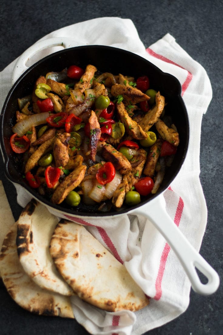 Leftover chicken, peppers, onions, and olives also go great on a salad! Bonus meal!