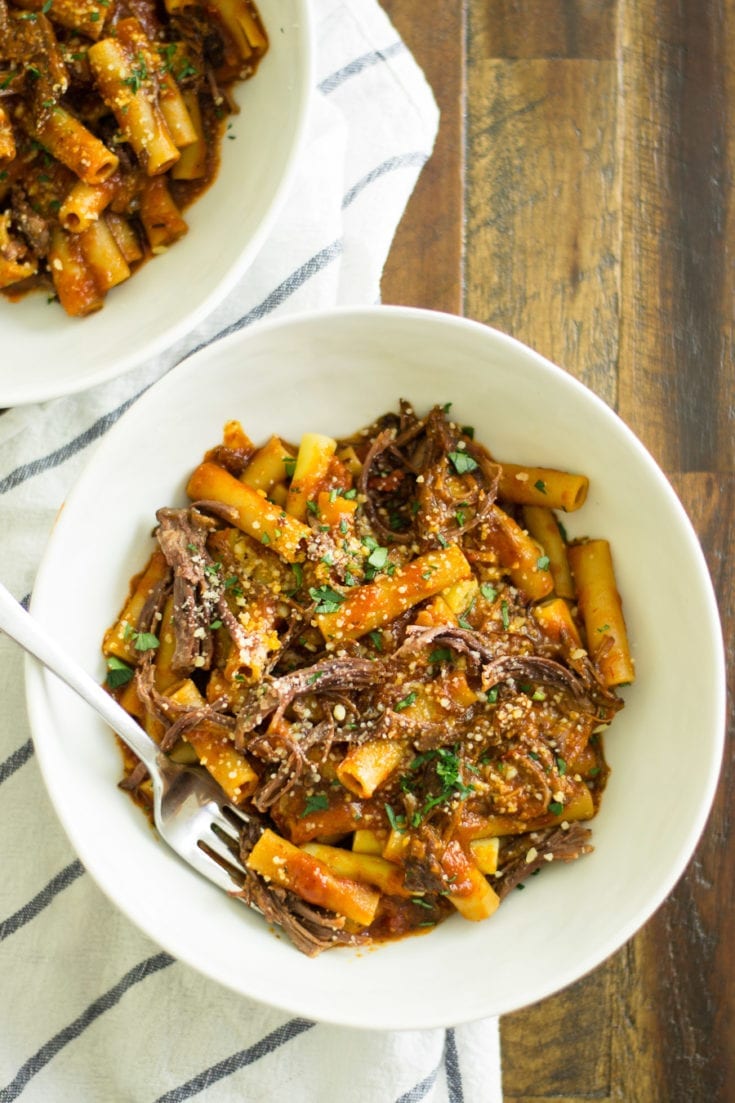 It was a razor thin battle between Bourbon Pot Roast Nachos and Red Wine Short Rib Ziti. As much as I love my pot roast naco recipe, the ziti won out.