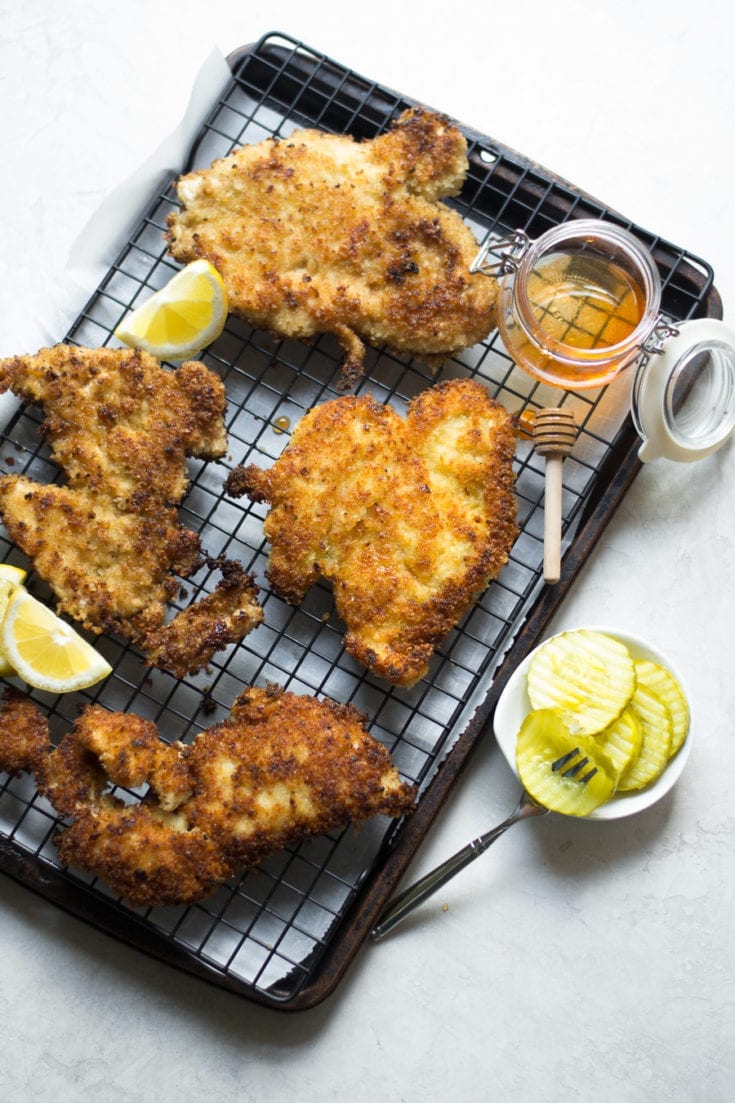 Jalapeño and pickle brined pan-fried chicken is like the best chicken schnitzel you have ever had.