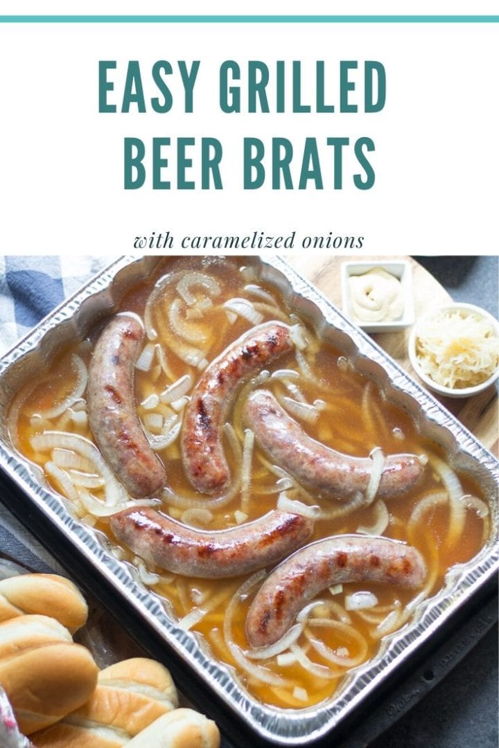 This is the easiest way to make grilled beer brats. A foil pan on the grill filled with beer, a sliced onion, and your favorite brat/sausage. Not only do you get juicy brats, you get caramelized onions to boot!