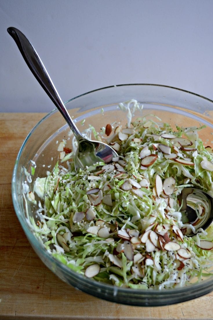 Massaged kale with a light lemon vinaigrette mixed with creamy brie and thinly sliced roasted sweet potatoes.