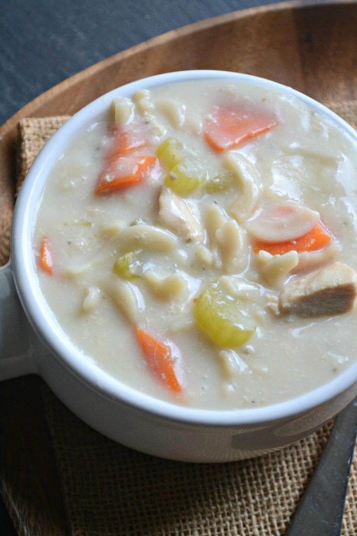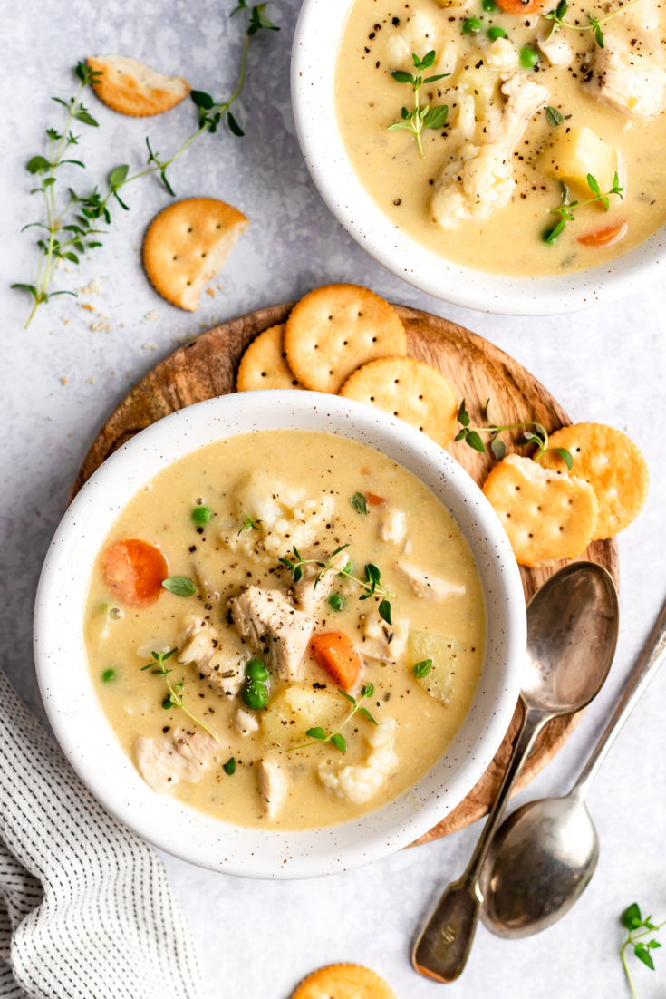 A hearty tomato-based soup loaded with carrots, celery, onion, white beans, kale, and lots of crusty bread. Think minestrone pot pie without the pie crust.
