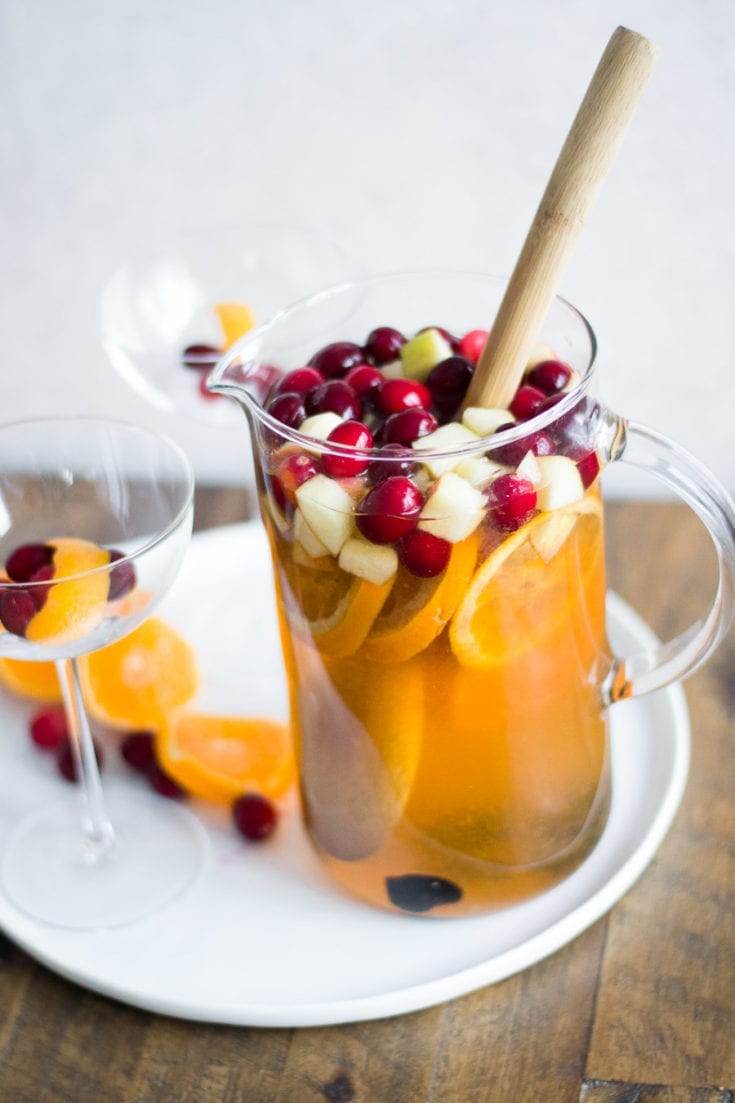 Cranberry old fashioned white wine sangria has all the booze of an old fashioned with the easy sipping feel of a sangria.