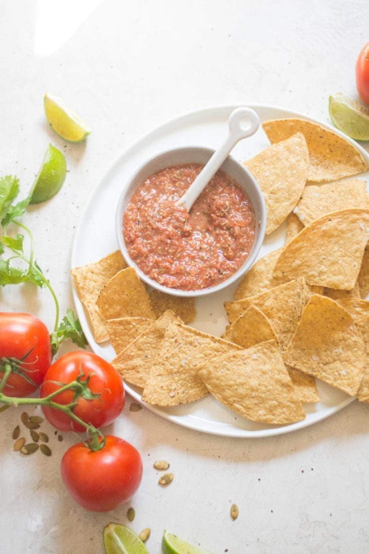 Fire-roasted tomatoes, chipotle peppers, and roasted pepitas make the perfect base for this at home copycat version of Trader Joe's Pepita Salsa.