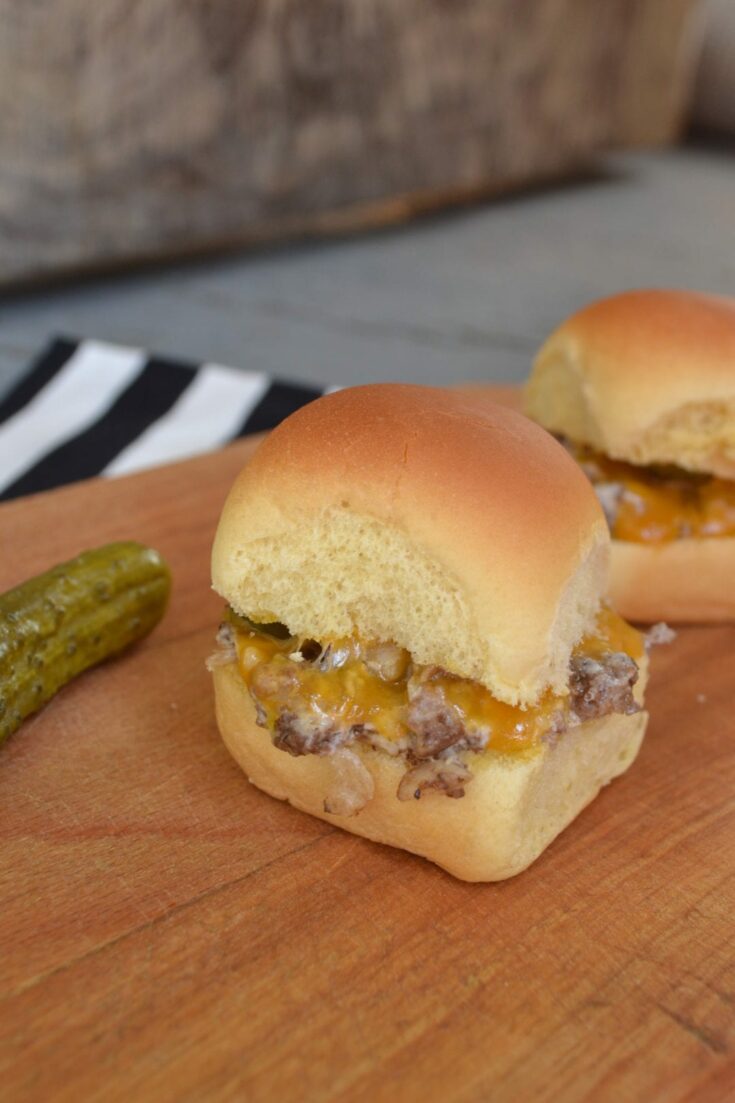 Thin and juicy smash cheese burgers cooked in a cast iron skillet on the grill with caramelized onions and a little butter.