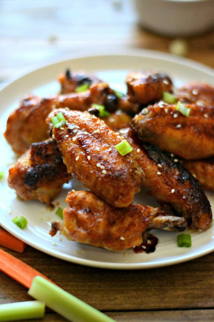 Beer brined spiced grilled chicken wings with a secret ingredient, molasses, to add just the tiniest bit of sweetness to balance all that buffalo spice.