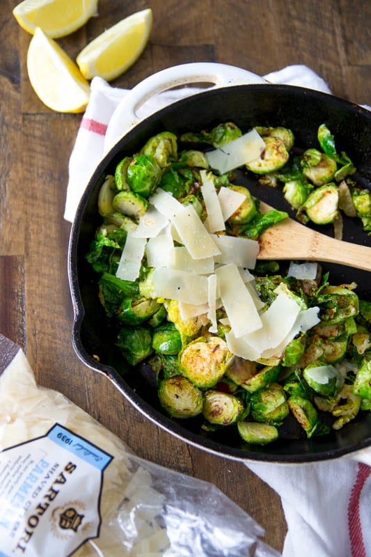 Simply cooked skillet asparagus in a brown butter and lemon sauce.