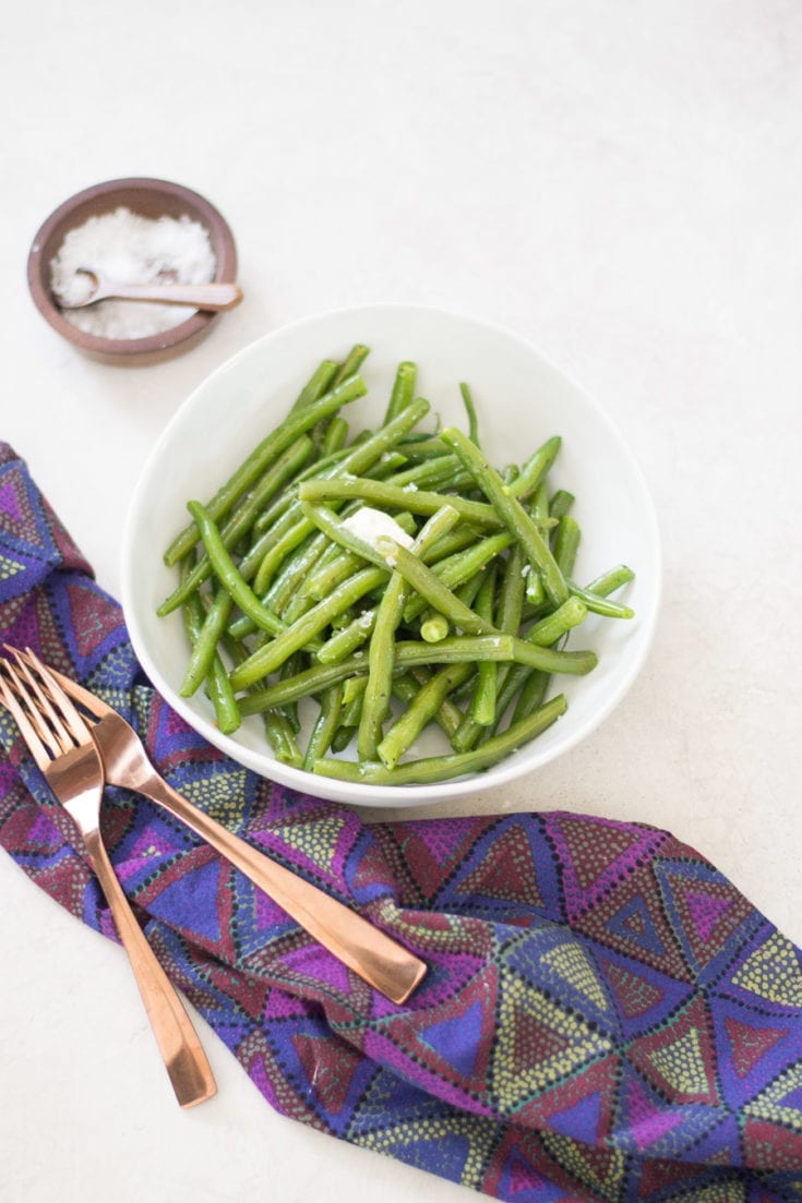 Tender and bright green beans quickly blanched and then tossed with butter, salt, pepper, and either lemon juice or lemon zest.