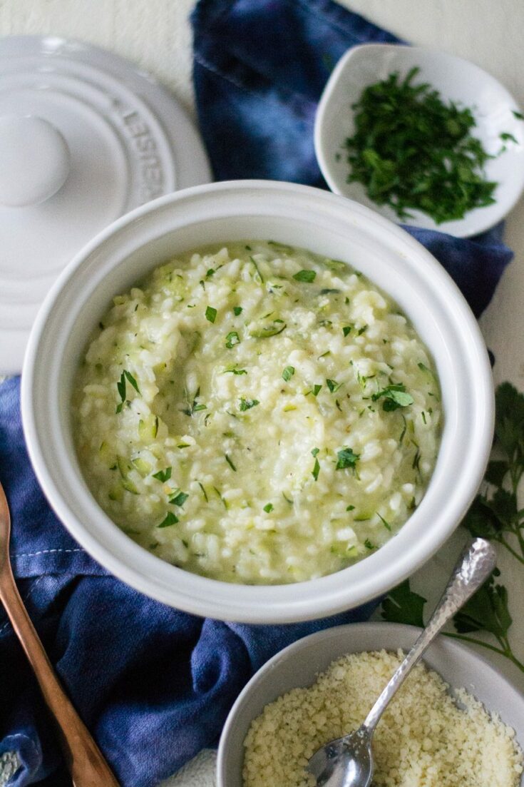 Creamy Instant Pot Zucchini Risotto filled with lots of onion, garlic, and Parmesan Cheese.