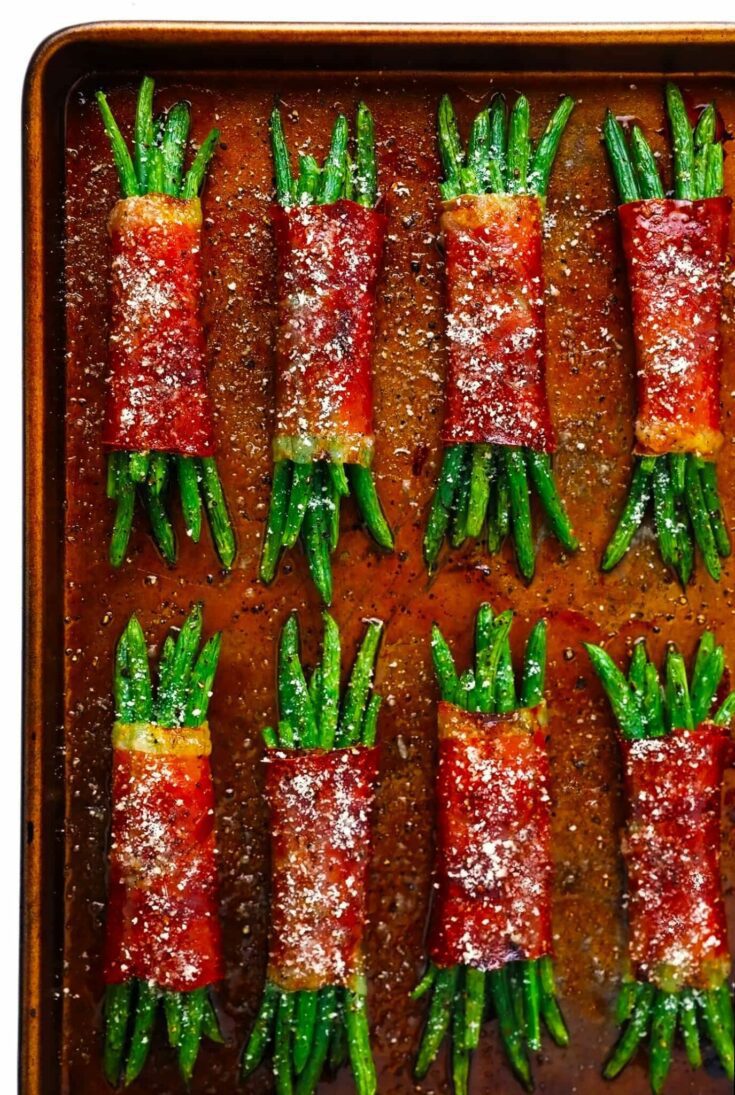 Roasted green beans with crispy bacon and toasty pecans.