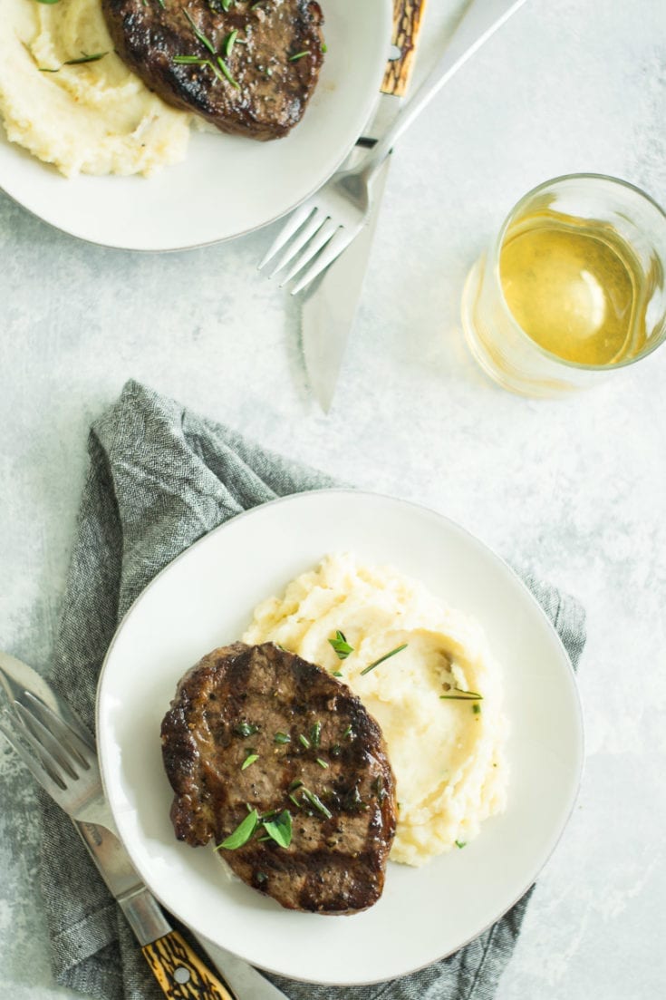 Simply grilled steaks bathed in melted butter, fresh rosemary and a smashed garlic clove.