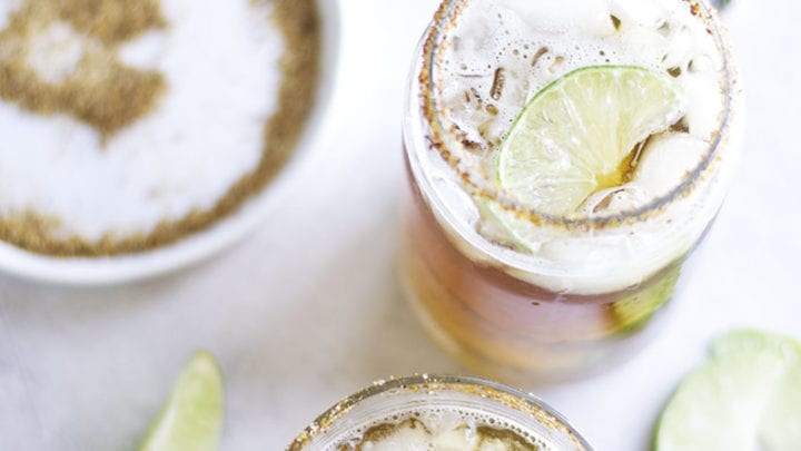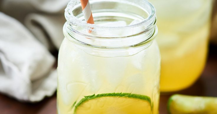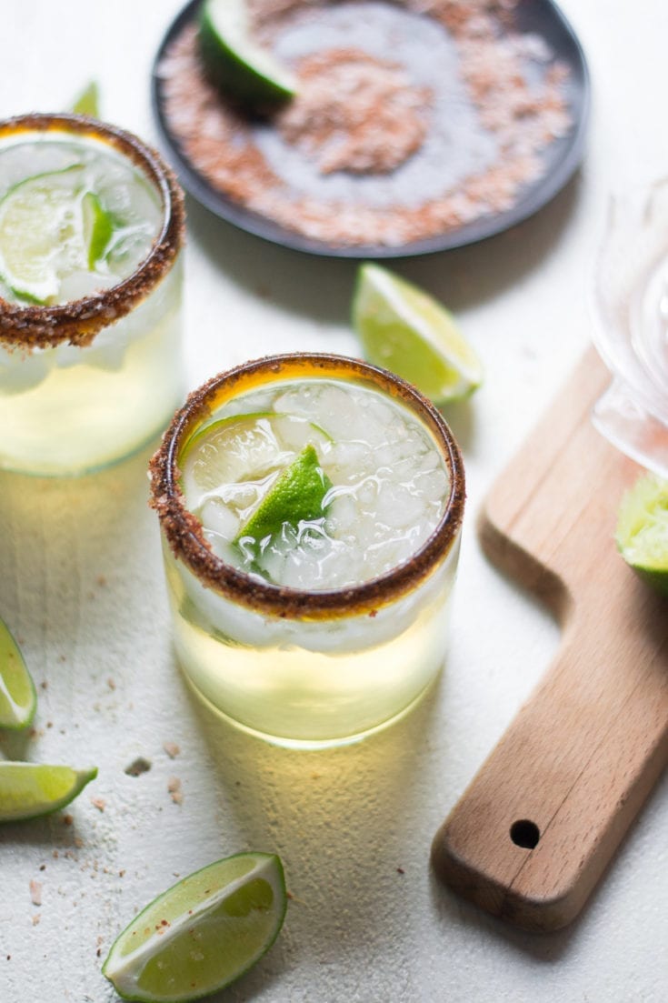 A skinny low carb margarita made using infused tequila, a small amount of sweetener, and a little lime juice.