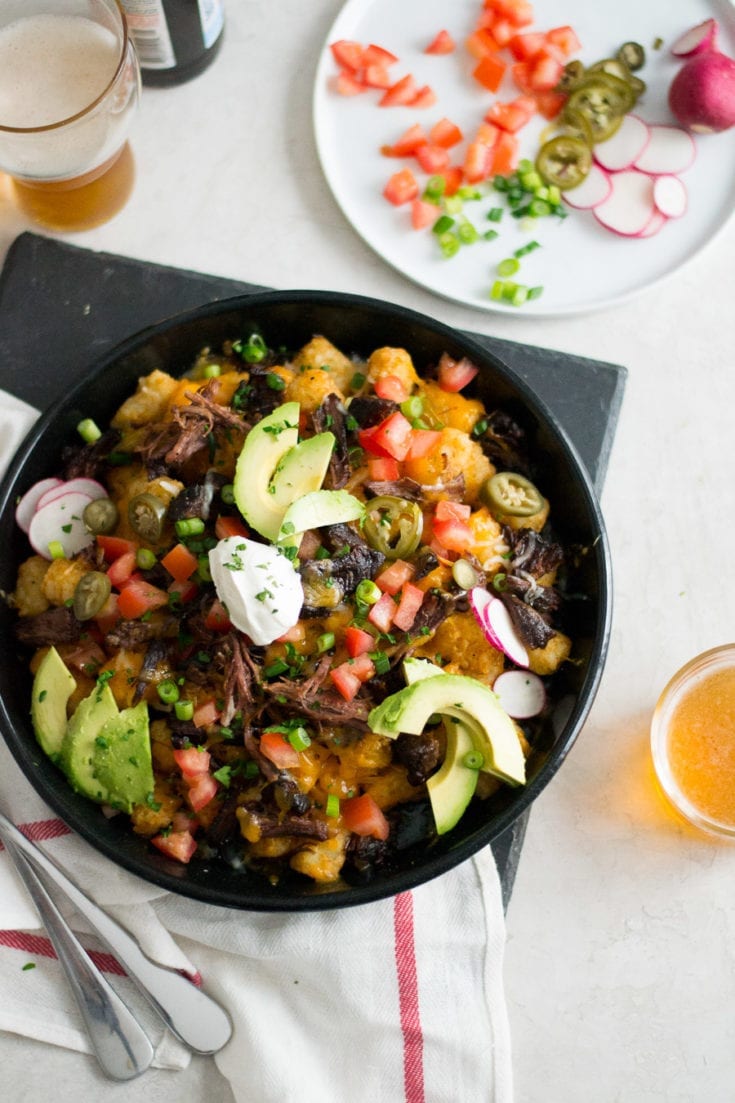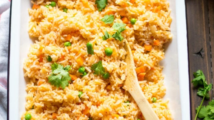The day of the party all you have to do is reheat everything on low in the oven until you’re ready to eat. I also save the beans and rice for the day of because otherwise they overcook or dry out.