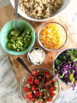 A killer Mexican fiesta dinner menu needs lots of options and toppings. You will also need to stock your fridge with all the other typical toppings:
