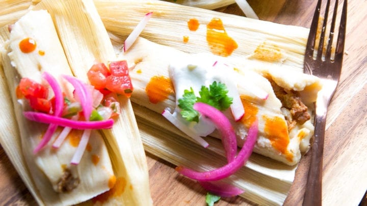 Tamales take a bit more time and effort. I assembled and then steamed them ahead of time. Store them in the fridge and then re-steam them the day of the party. Since you are making them in the Instant Pot, you can keep them on warm until dinner is served.