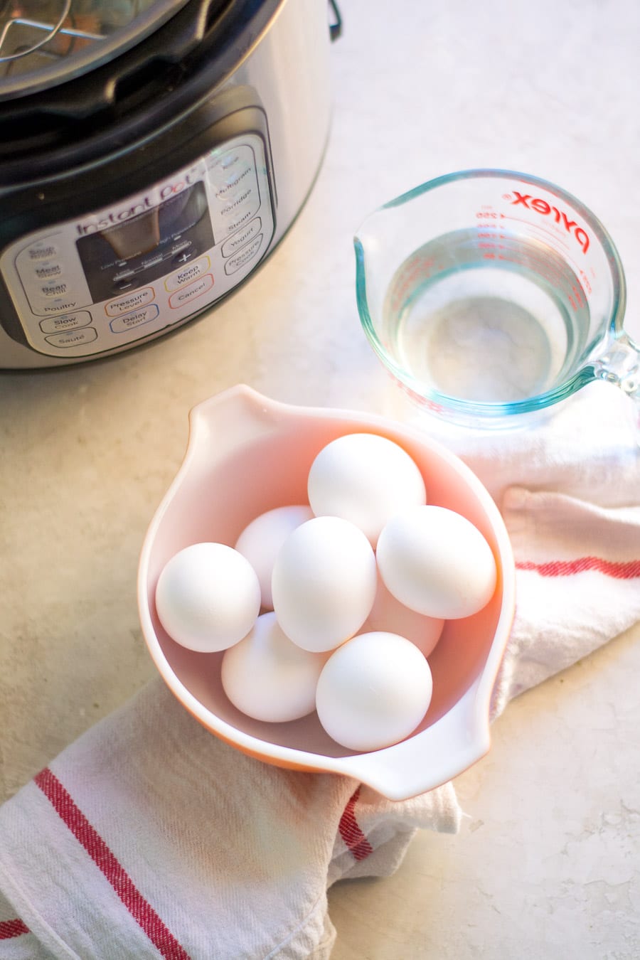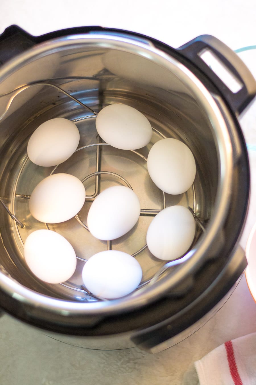 The reason I recommend older eggs is because the fresher the egg, the harder they are to peel. I also pull the eggs right out of the fridge and place them into the Instant Pot cold.