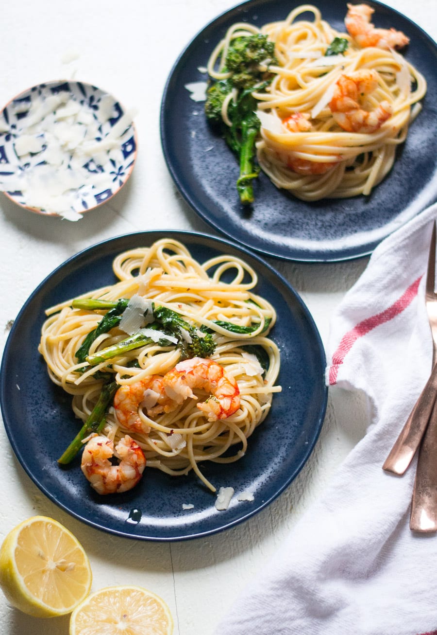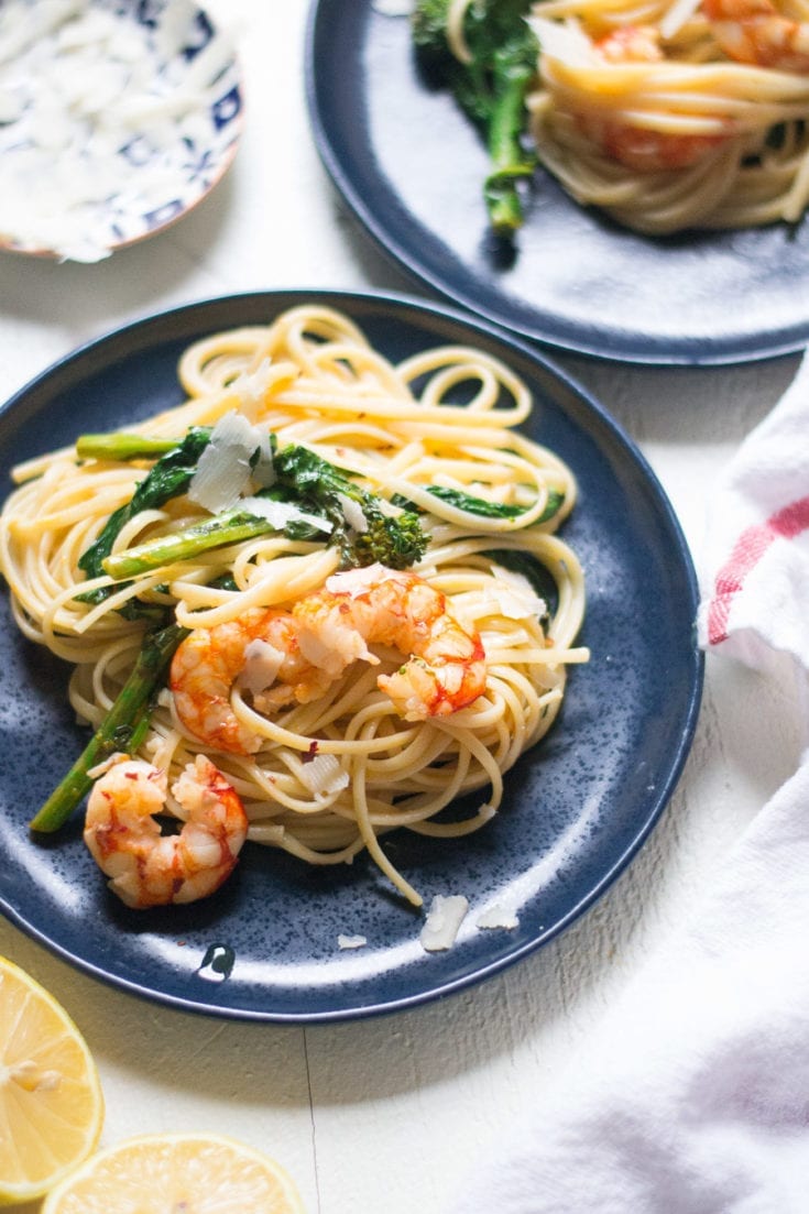 Spicy shrimp and broccolini pasta isn’t my first venture into the spicy shrimp pasta world. If you cannot find broccolini, try spicy lemon shrimp pasta instead. It is a recipe my Mom made all the time when I lived at home.